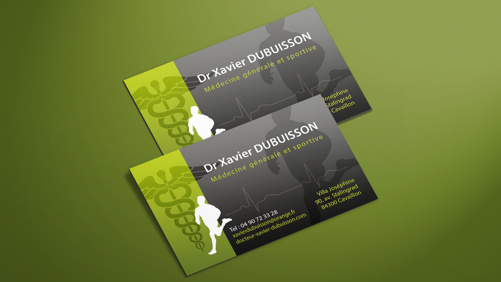 Notre studio graphique a créé la carte de visite du docteur Dubuisson, généraliste et médecin du sport à Cavaillon.