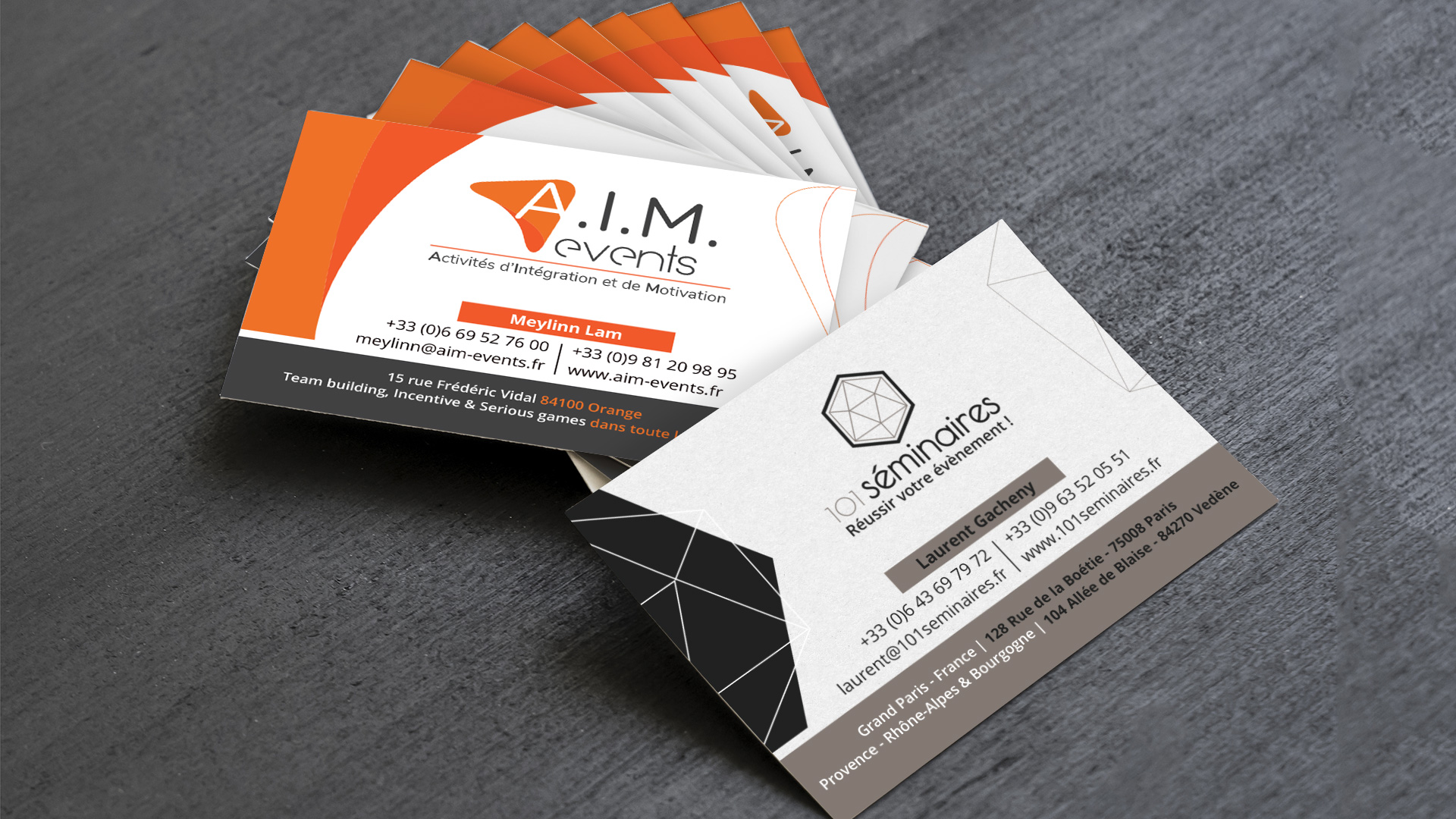 Réalisation de cartes de visite pour les sociétés A.I.M. Events et 101 Séminaires