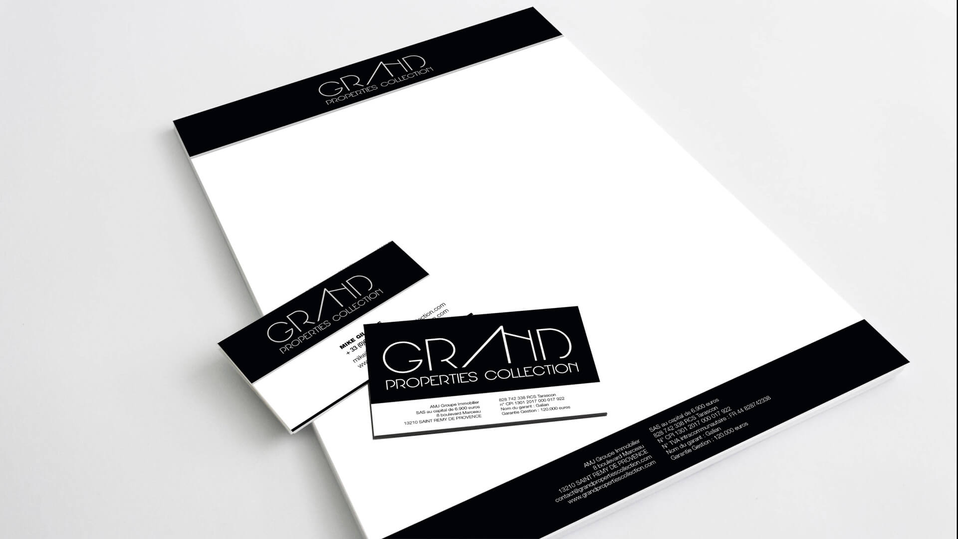 Grand Properties Collection nous a fait confiance pour la création de sa charte graphique. Nous avons effectivement créé le logo, ainsi que le papier entête, et la carte de visite de la société.