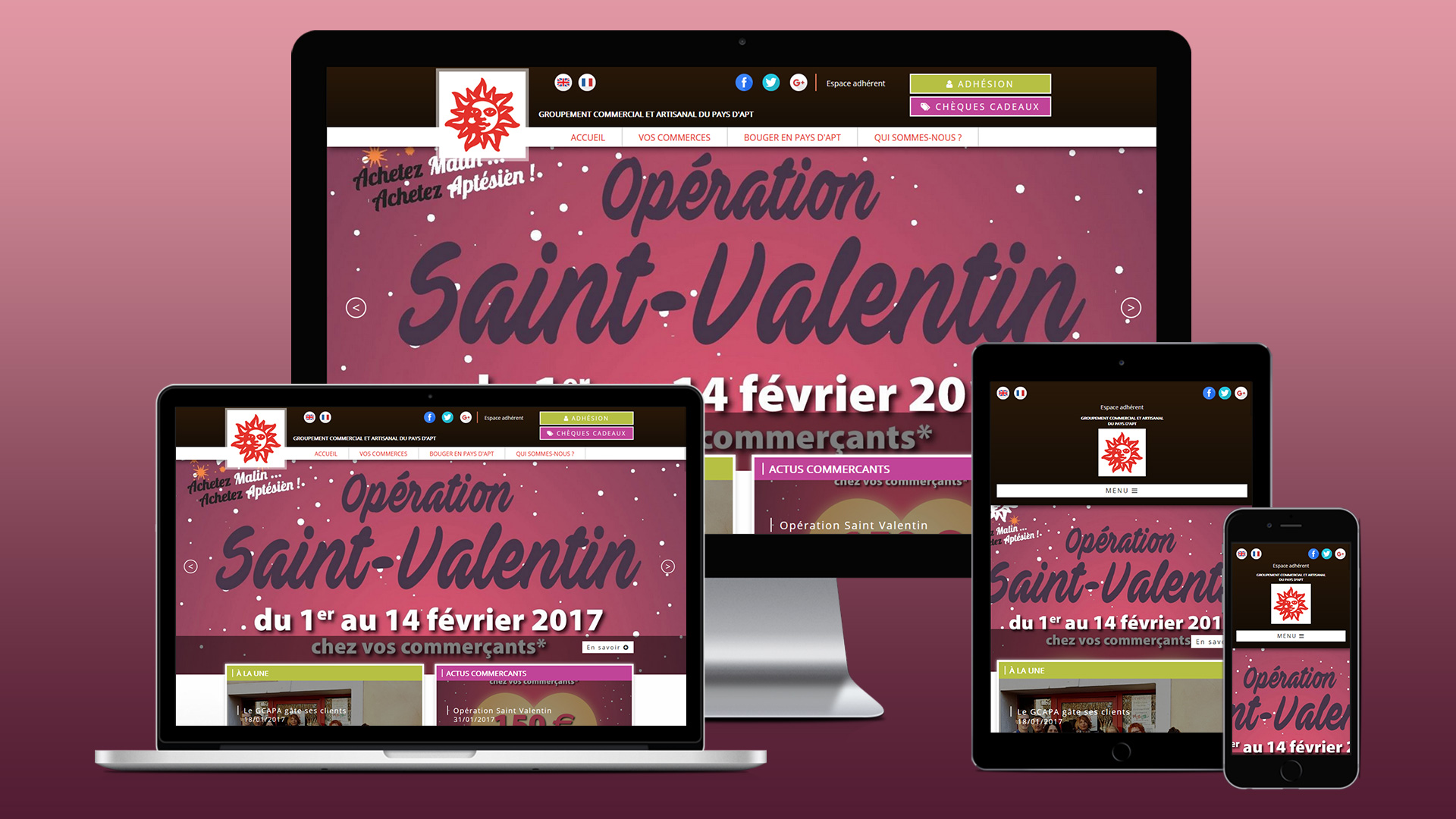 La création du site Internet à Apt du Groupement Commercial et Artisanal du Pays d'Apt pour offrir de la visibilité à ses adhérents sur le web.