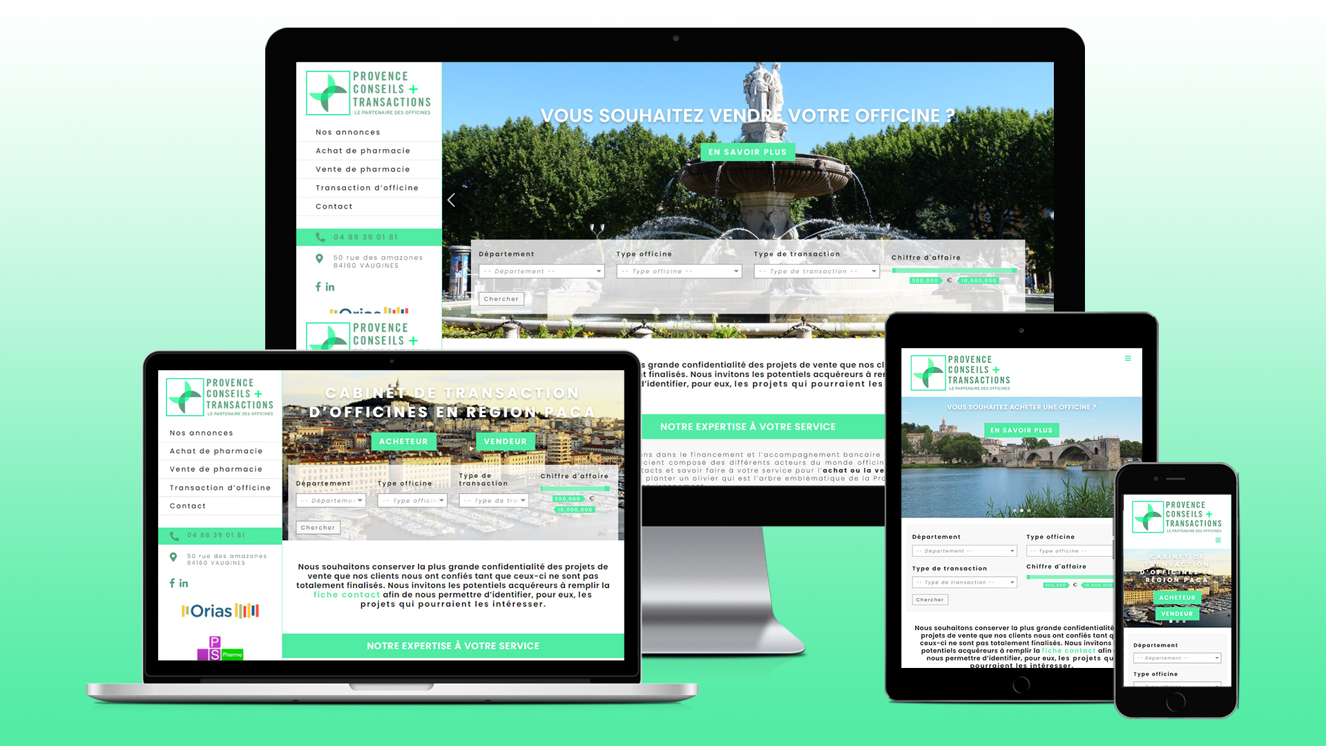 L'entreprise Provence Conseils Transactions, spécialisée dans la vente d'officines, a fait confiance à Azuracom pour la réalisation de son site web
