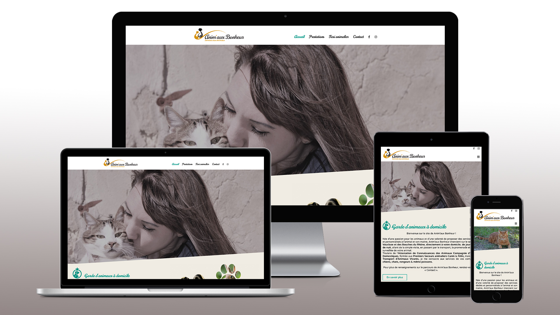 Création d'un site Interet pour Anim'Aux Bonheur, garde d'animaux à domicile dans le Vaucluse et les Bouches-du-Rhône.